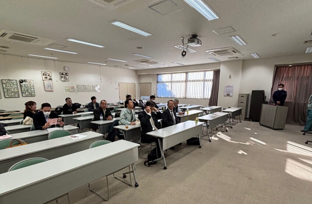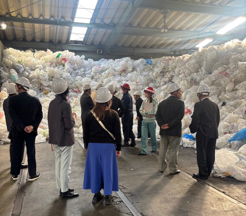 令和7年11月21日(金)、組合主催で「平塚市リサイクルプラザ視察研修」を実施し、組合員14名が参加しました。施設では、平塚市環境部環境施設課様より、収集体制や収集方法、資源化に向けた取り組み等、丁寧にご説明いただき、実際にペットボトル受入貯留ヤードを見学させていただきました。